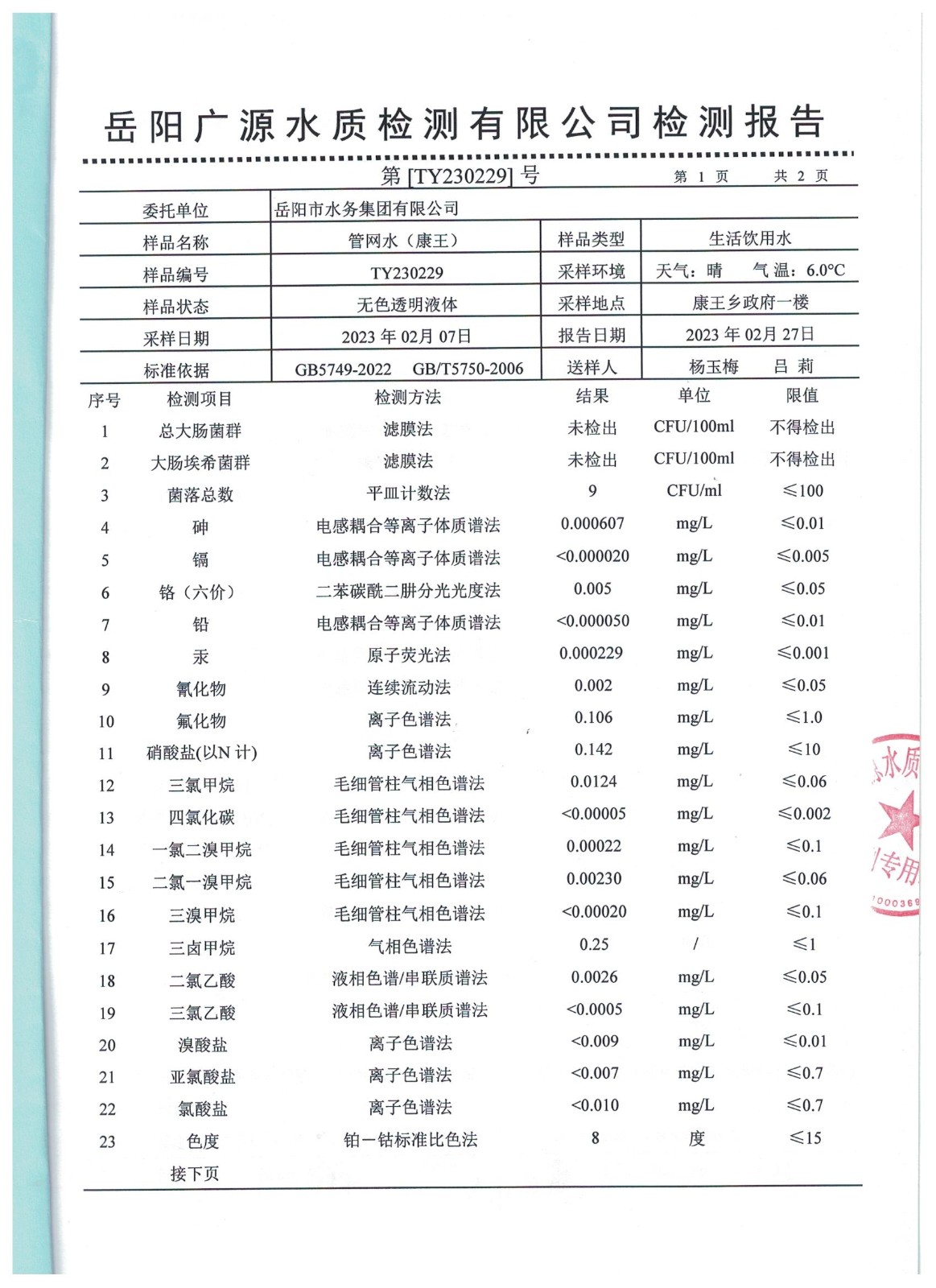 下一篇:2023年2月岳陽市水務(wù)集團(tuán)出廠水水質(zhì)檢測(cè)月報(bào)表