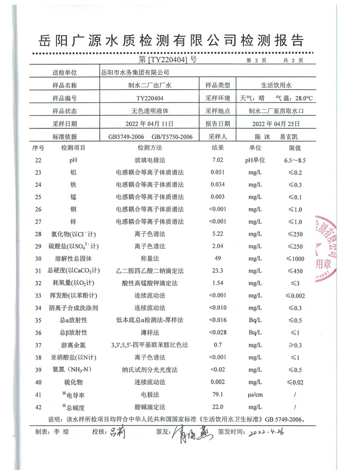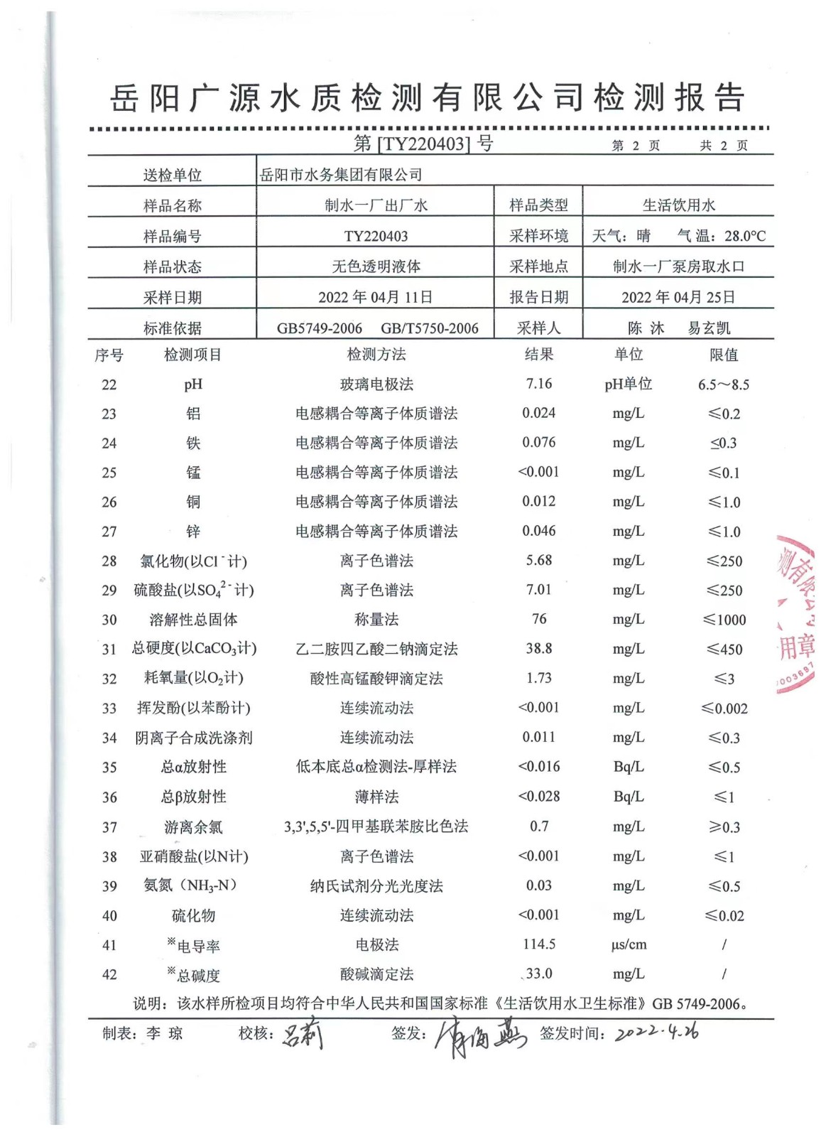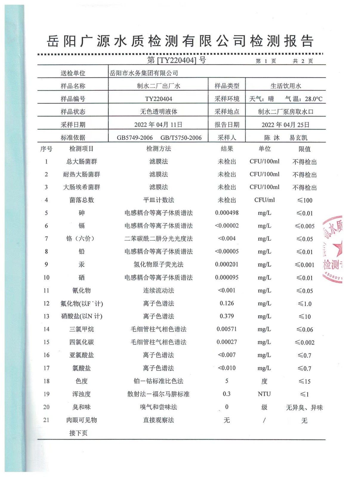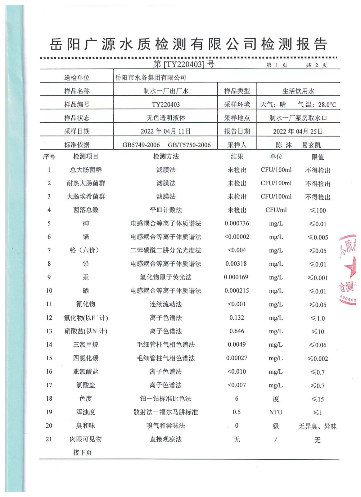 下一篇:2022年04月岳陽市水務(wù)集團(tuán)水源水水質(zhì)檢測月報(bào)表