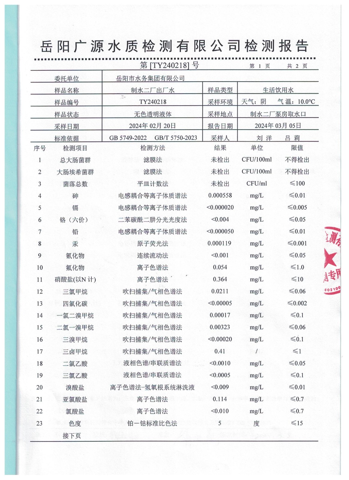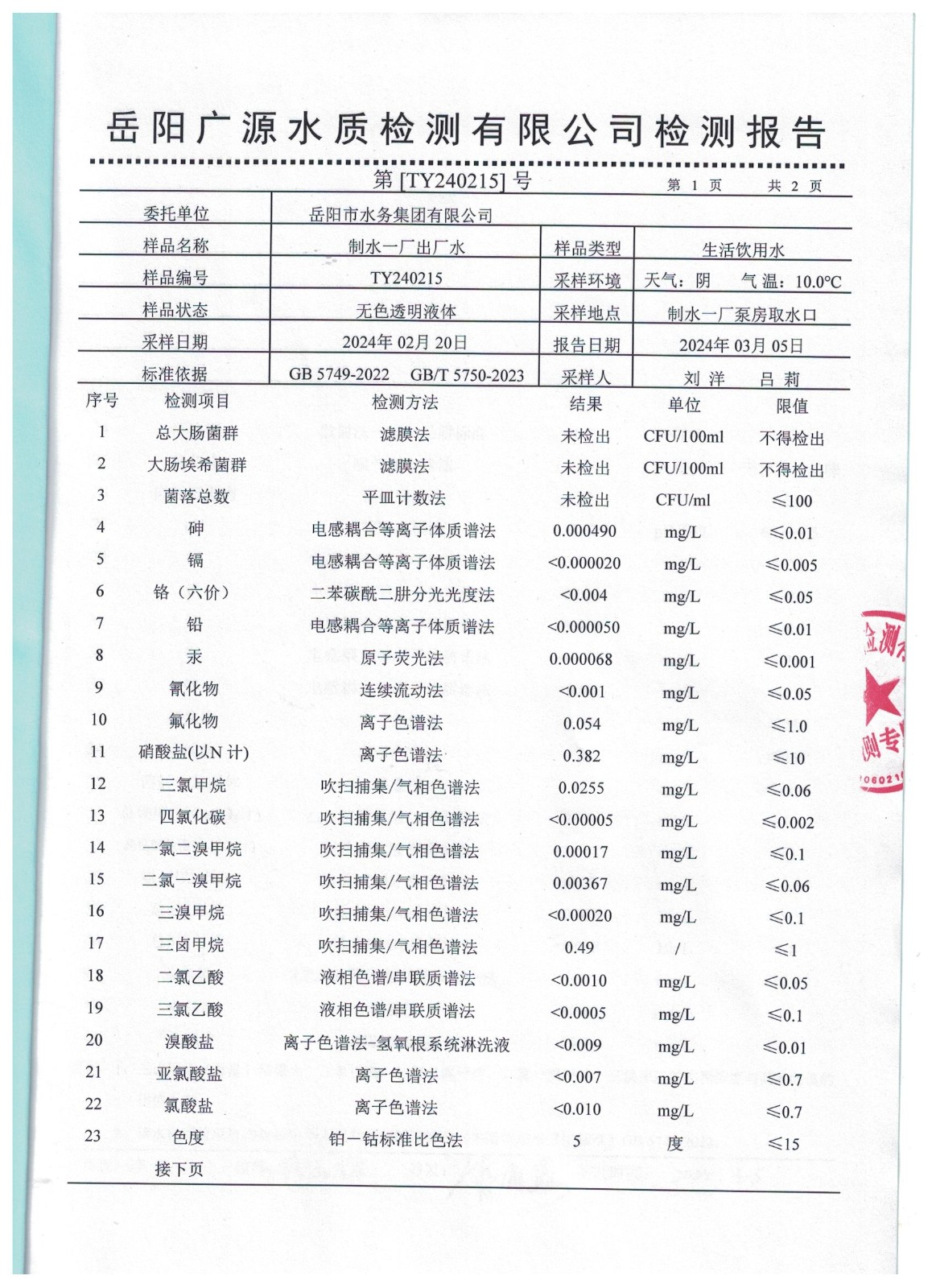 上一篇:2024年2月岳陽(yáng)市水務(wù)集團(tuán)管網(wǎng)水水質(zhì)檢測(cè)月報(bào)表