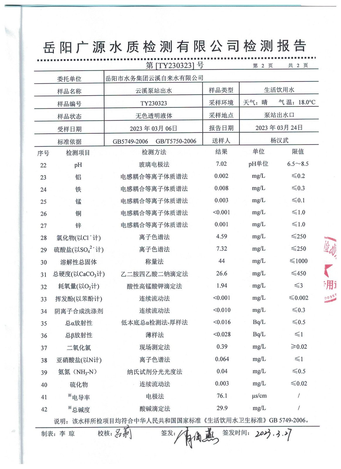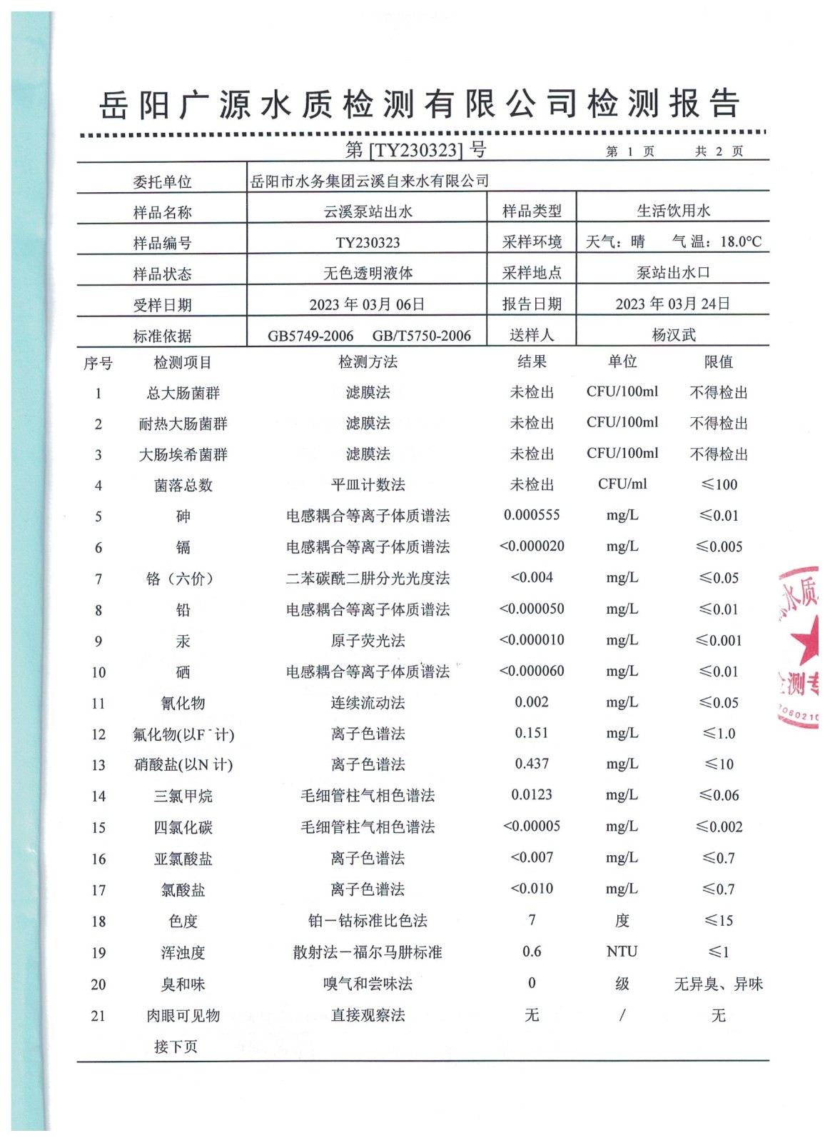 下一篇:2023年3月岳陽市水務(wù)集團(tuán)出廠水水質(zhì)檢測月報(bào)表