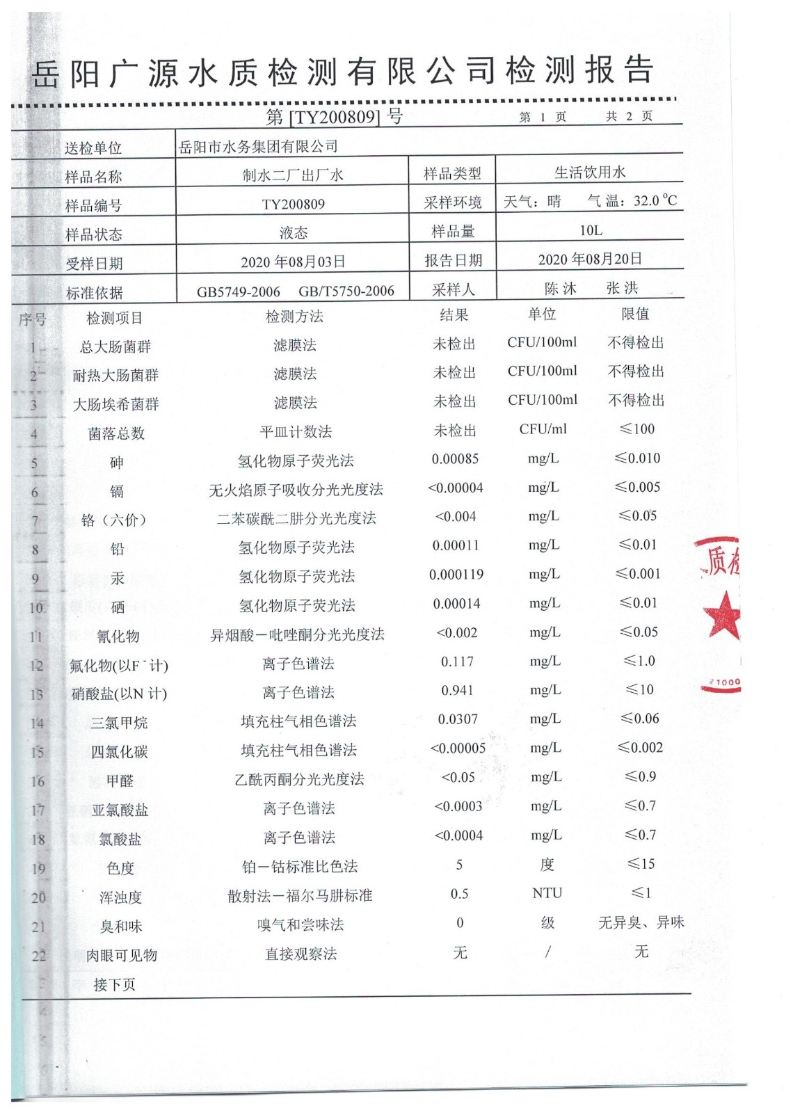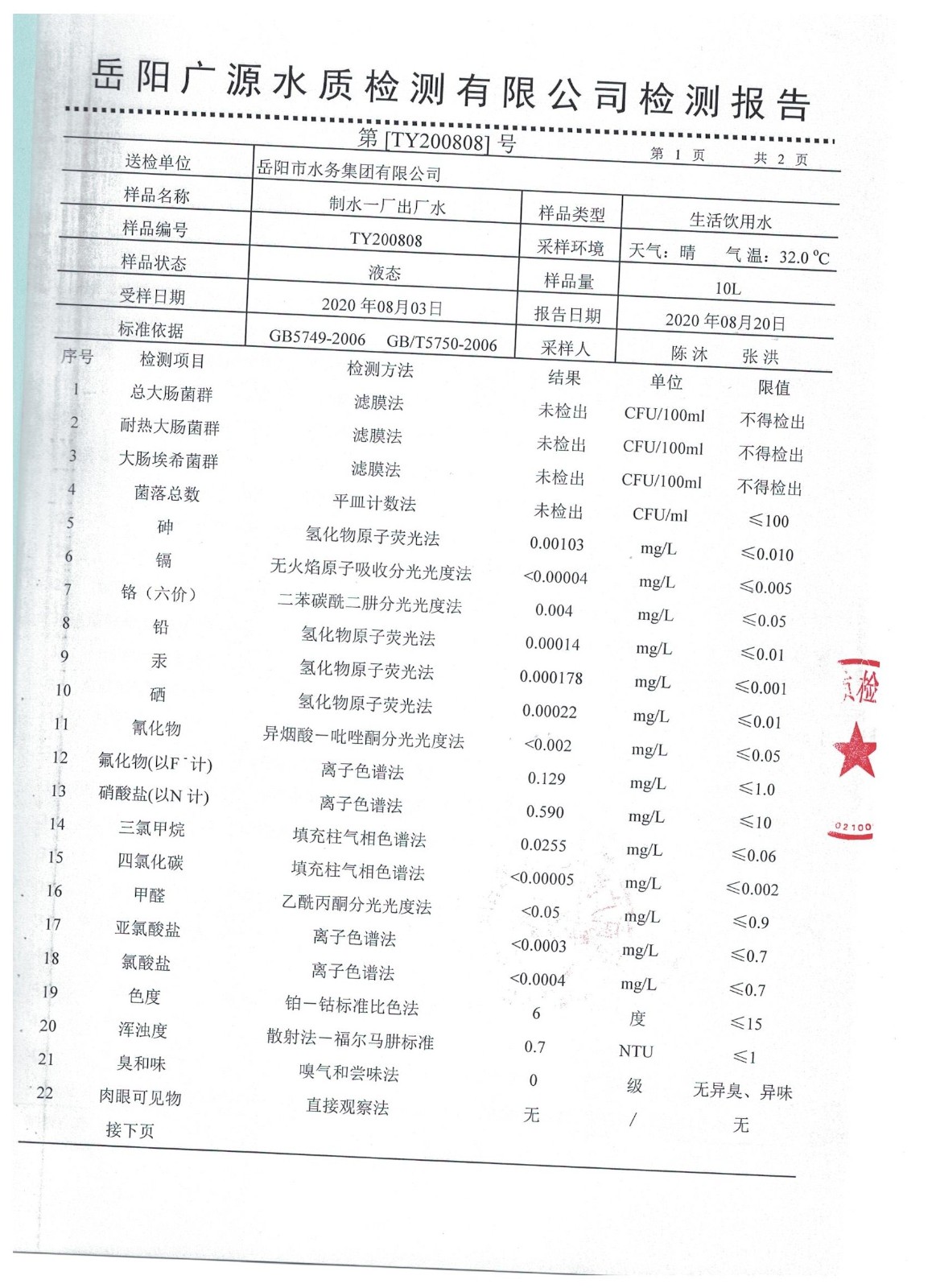 下一篇:2020年8月岳陽市水務(wù)集團(tuán)管網(wǎng)水水質(zhì)檢測(cè)月報(bào)表