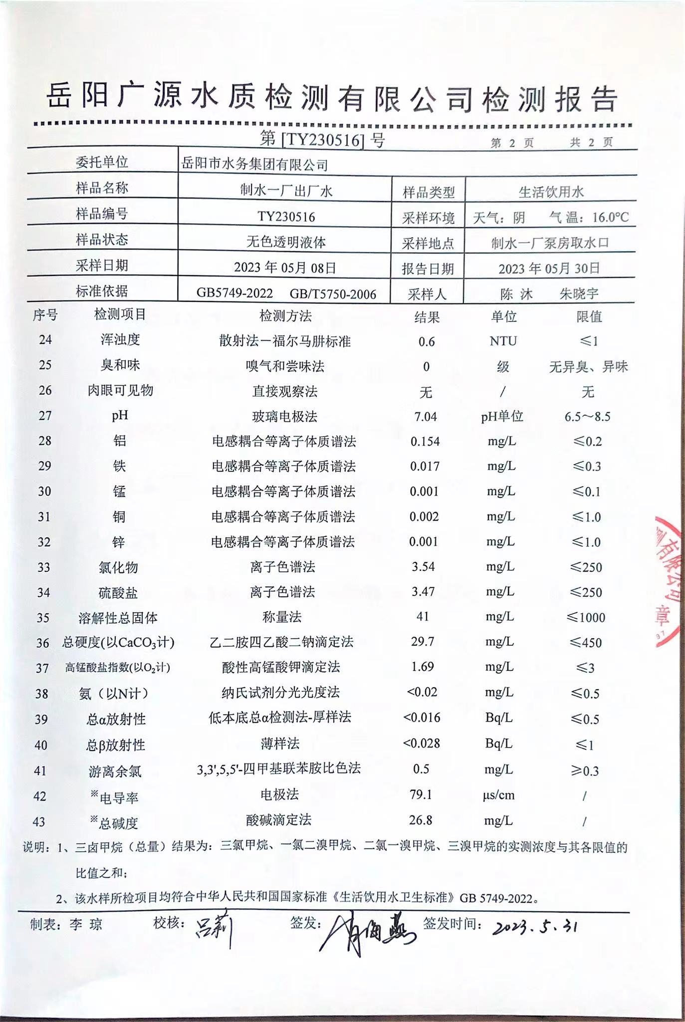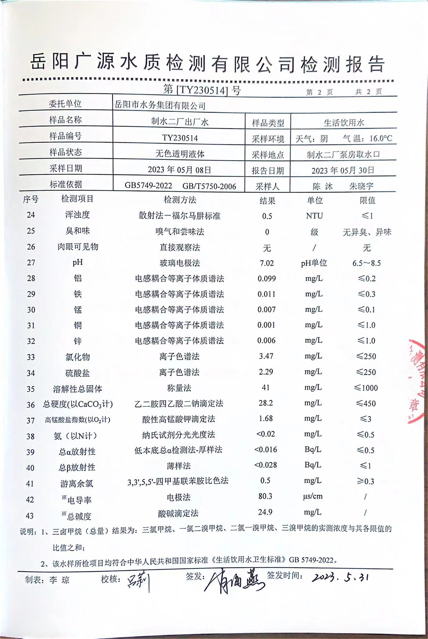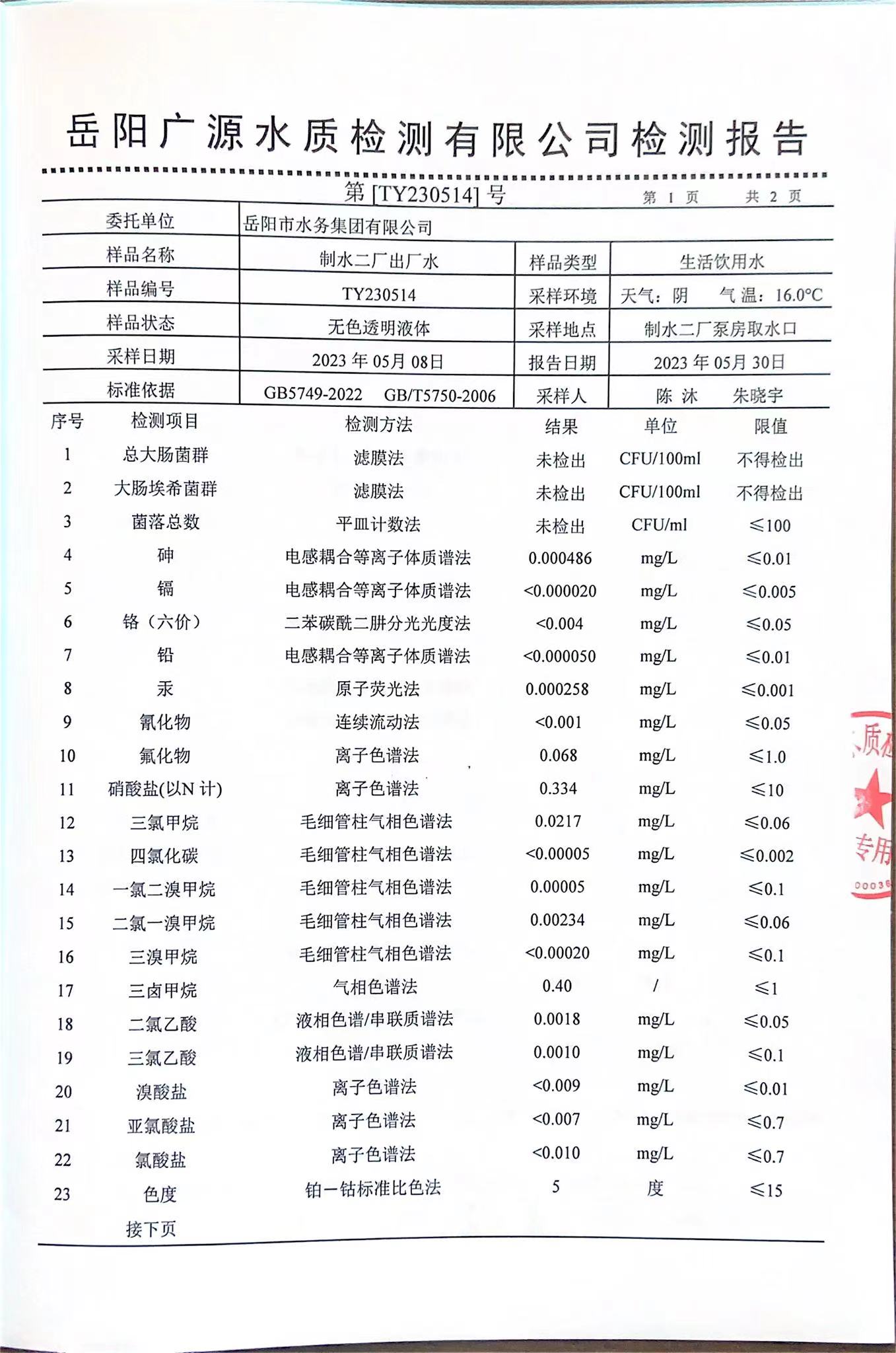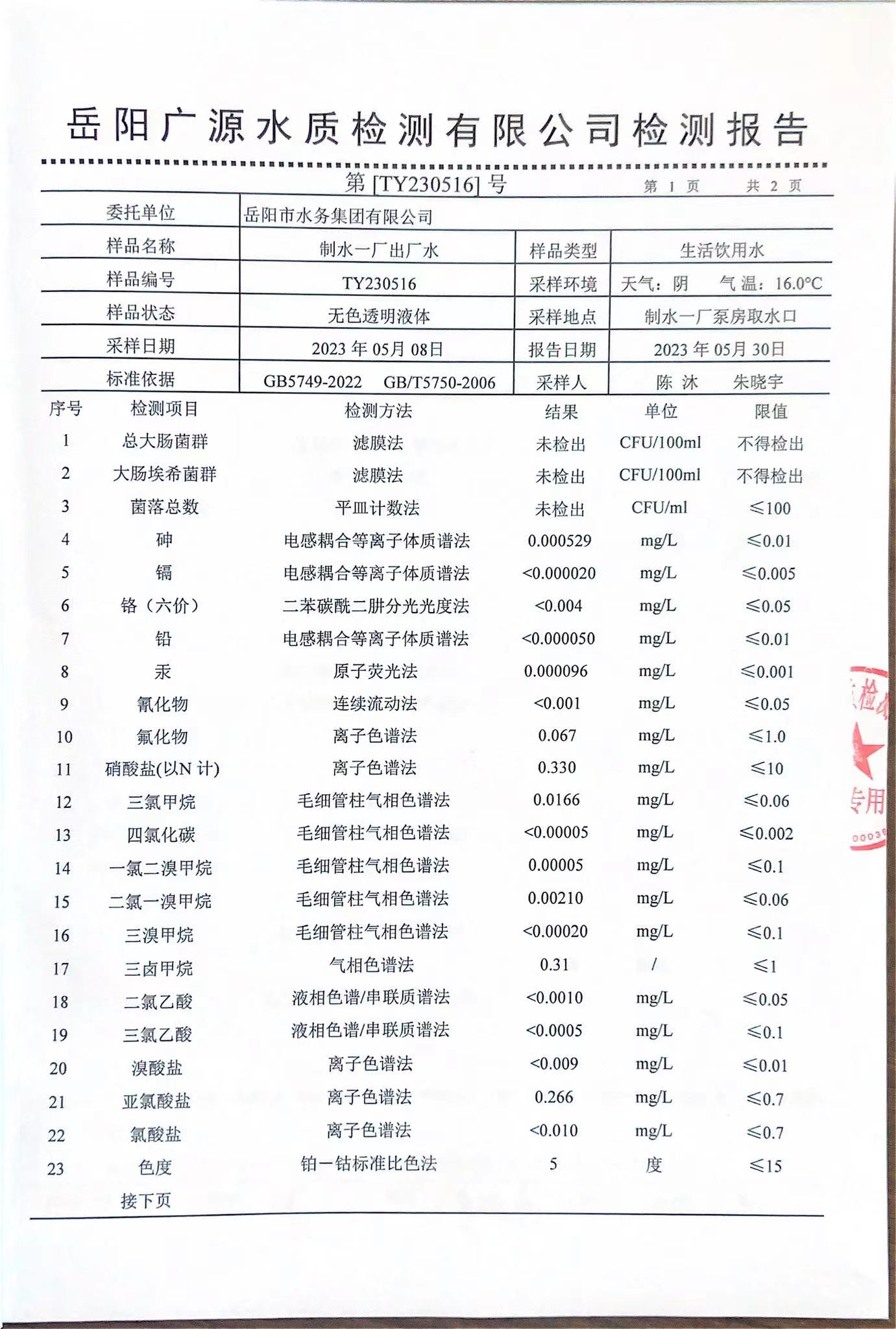 上一篇:2023年5月岳陽(yáng)市水務(wù)集團(tuán)管網(wǎng)水水質(zhì)檢測(cè)月報(bào)表