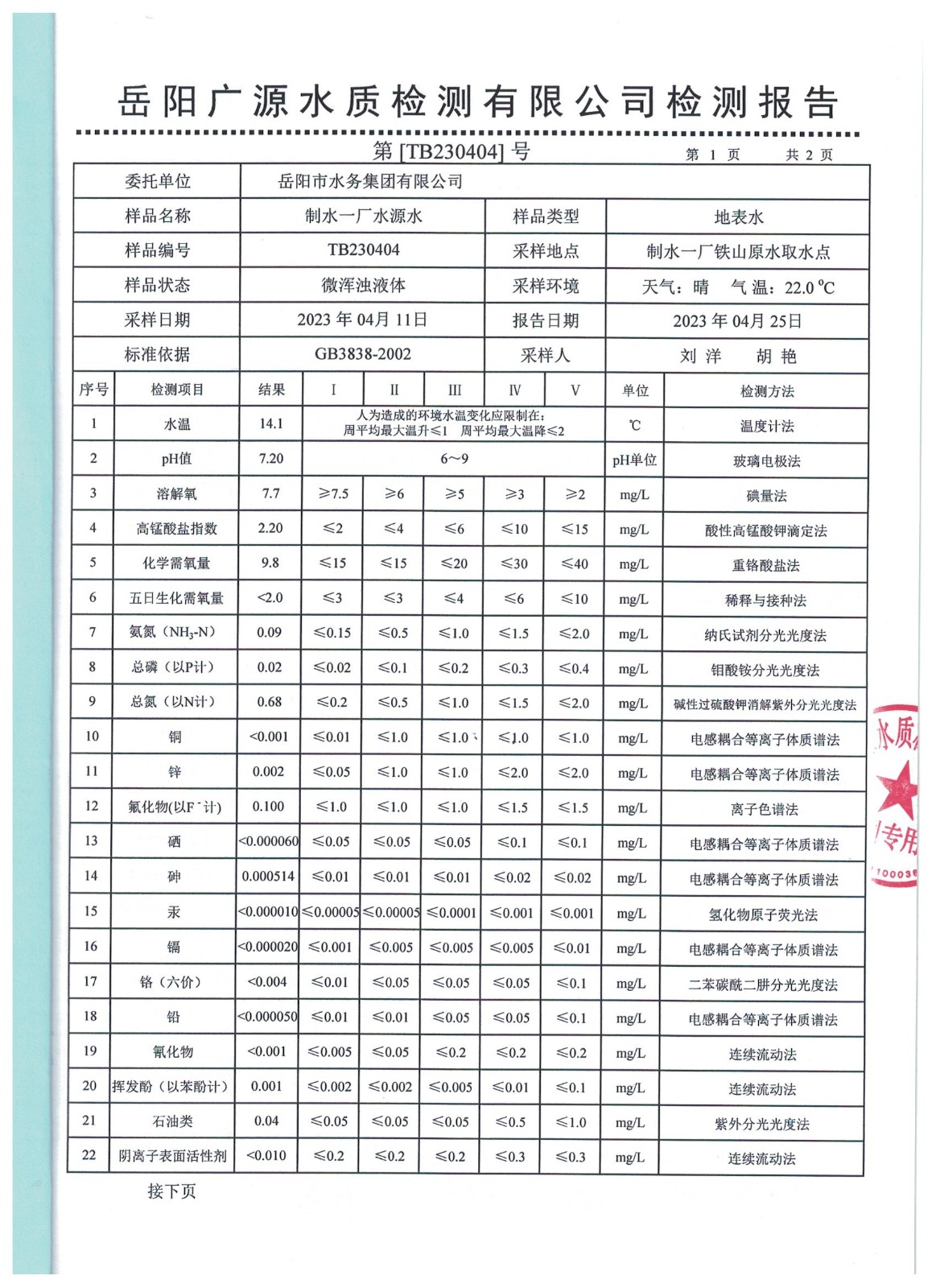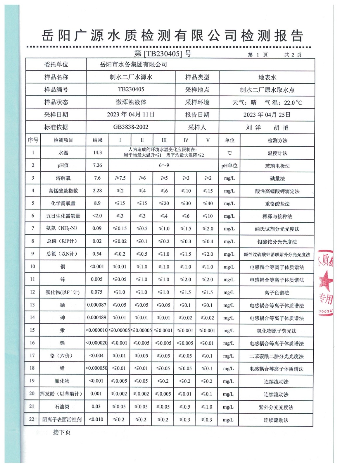下一篇:2023年3月岳陽(yáng)市水務(wù)集團(tuán)管網(wǎng)水水質(zhì)檢測(cè)月報(bào)表