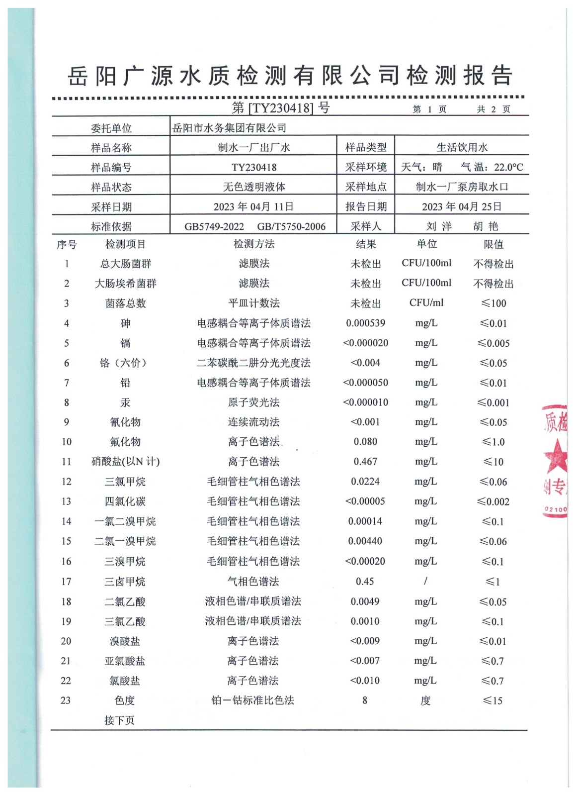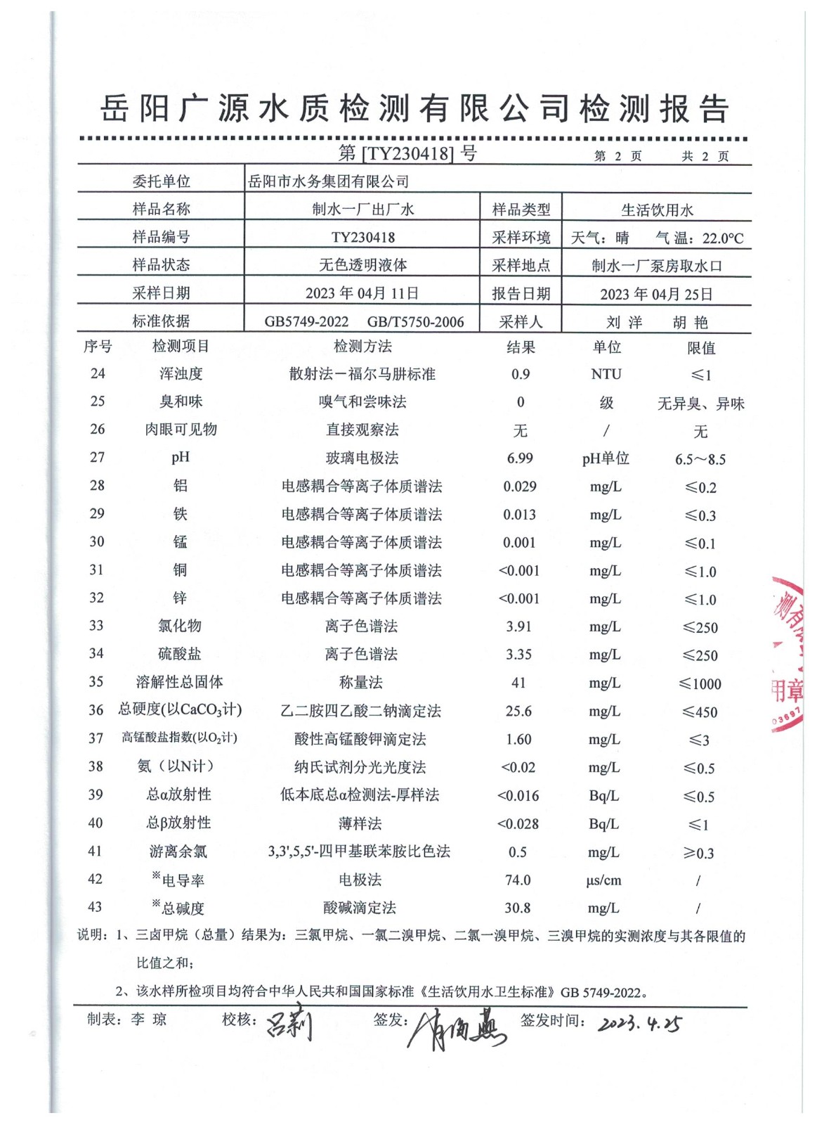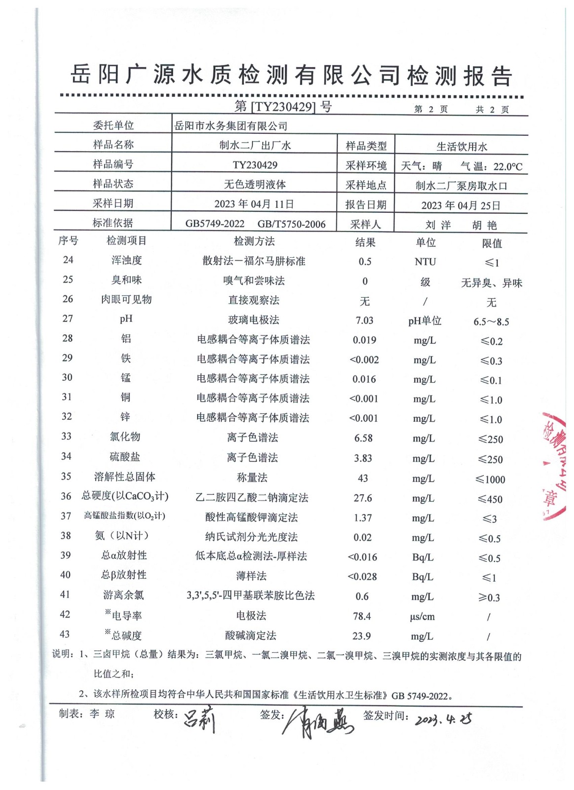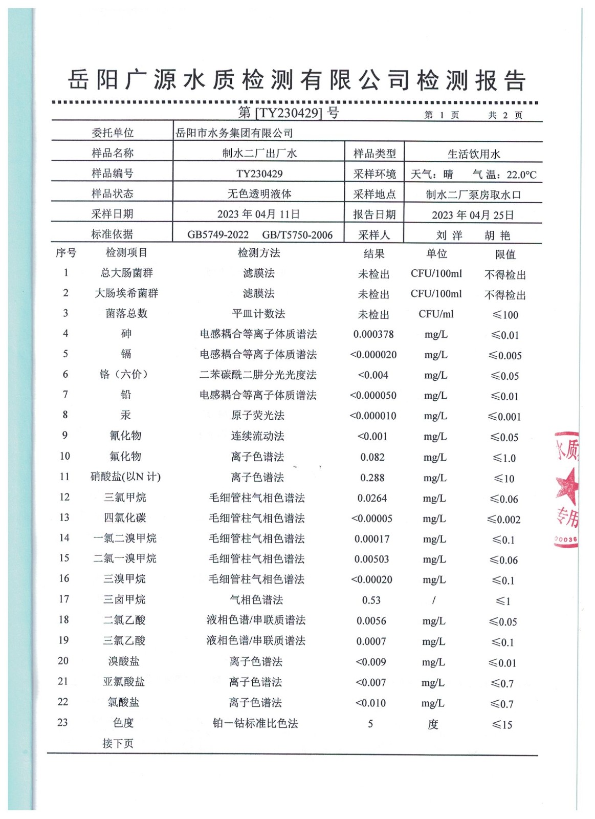 下一篇:2023年4月岳陽市水務集團水源水水質(zhì)檢測月報表