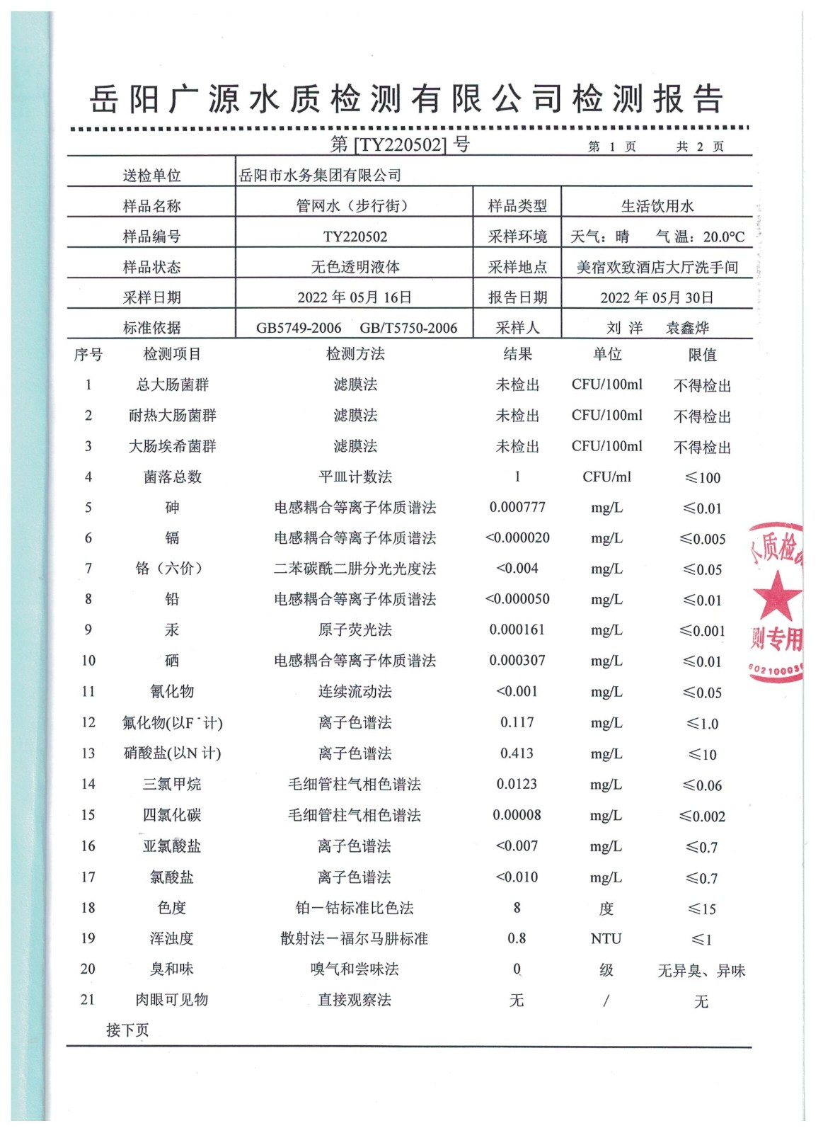 下一篇:2022年05月岳陽市水務(wù)集團(tuán)出廠水水質(zhì)檢測(cè)月報(bào)表