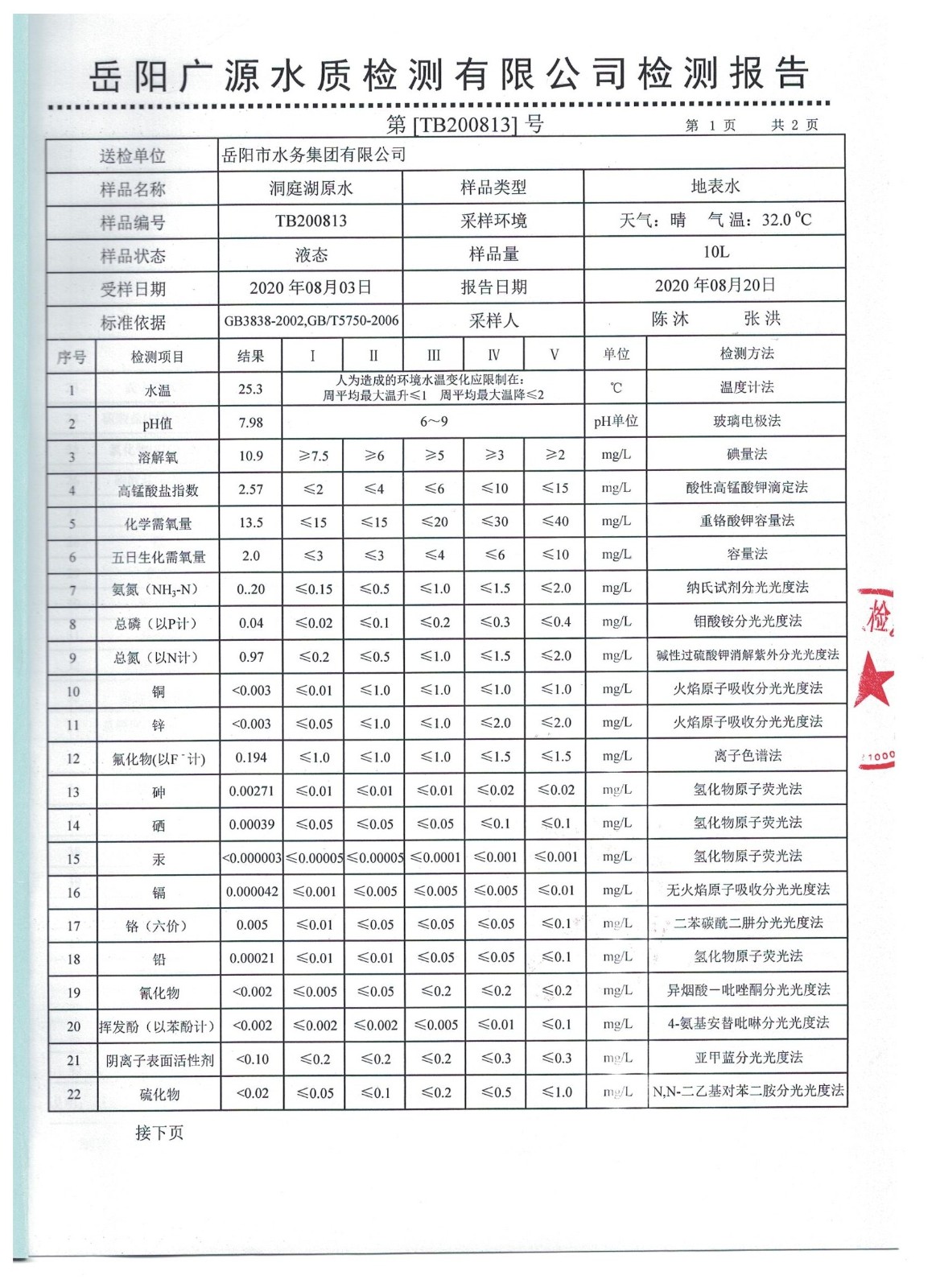 下一篇:2020年7月岳陽市水務(wù)集團(tuán)水源水水質(zhì)檢測(cè)月報(bào)表