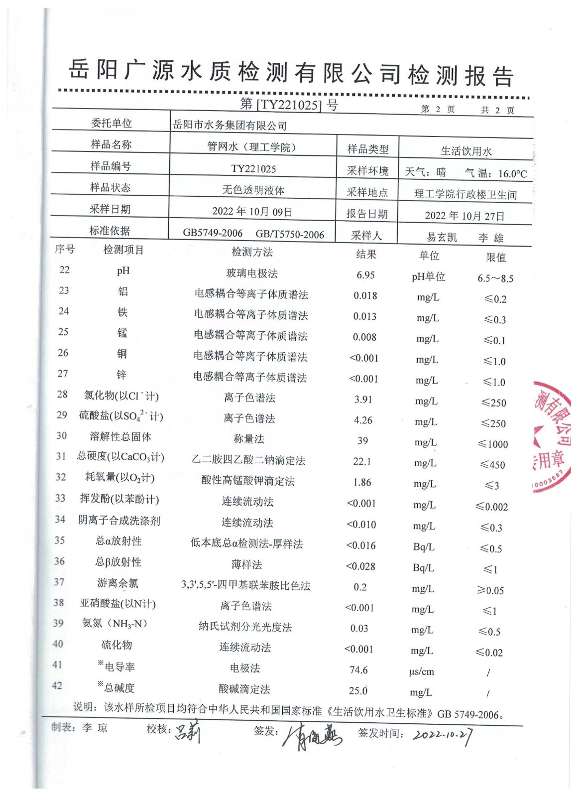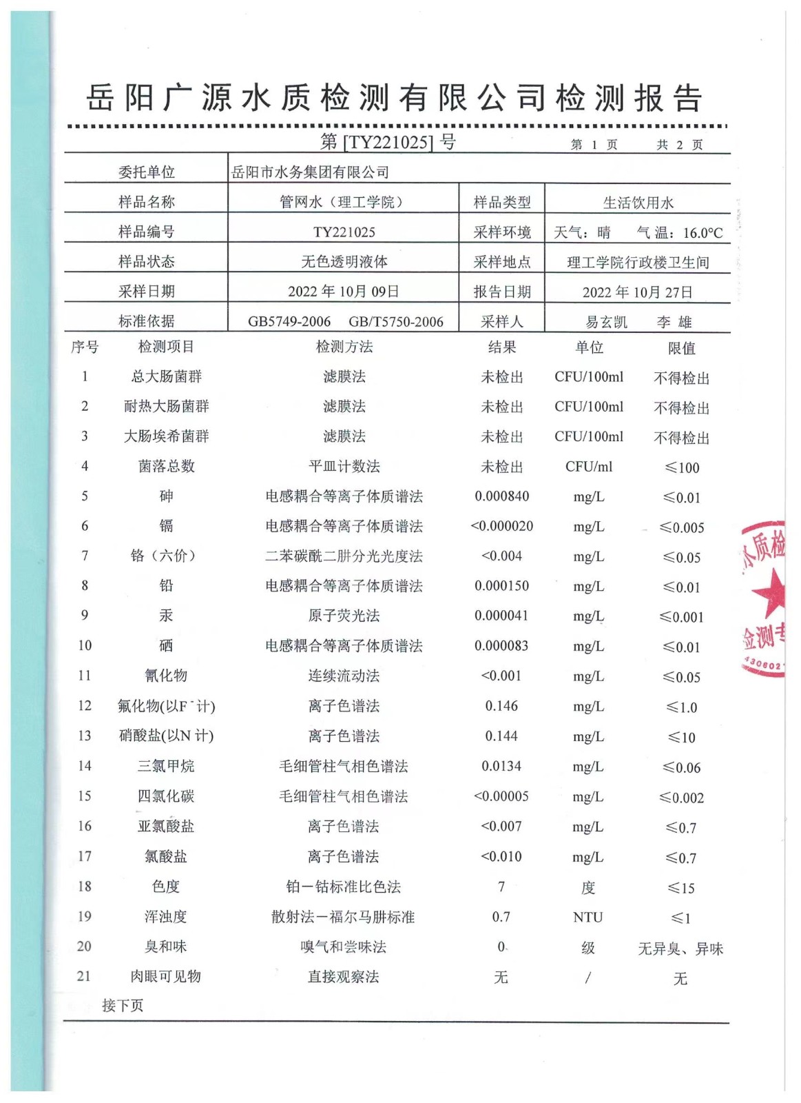下一篇:2022年10月岳陽(yáng)市水務(wù)集團(tuán)出廠水水質(zhì)檢測(cè)月報(bào)表