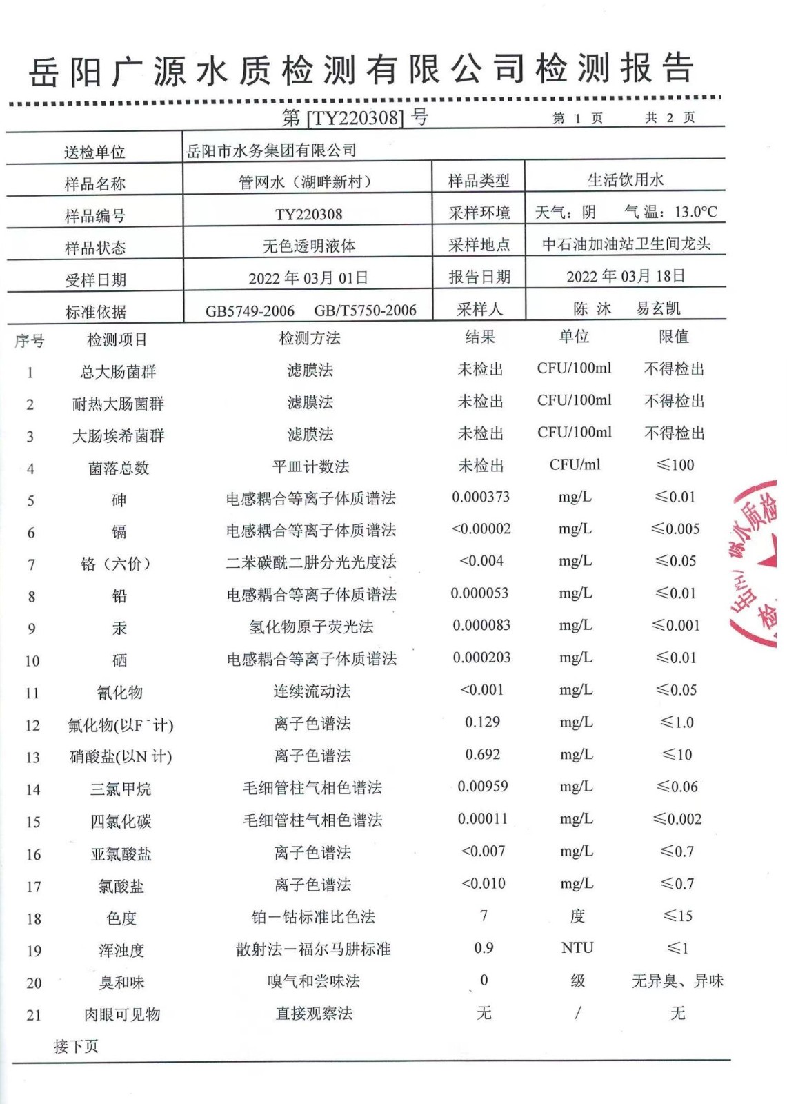 下一篇:2022年03月岳陽(yáng)市水務(wù)集團(tuán)出廠水水質(zhì)檢測(cè)月報(bào)表