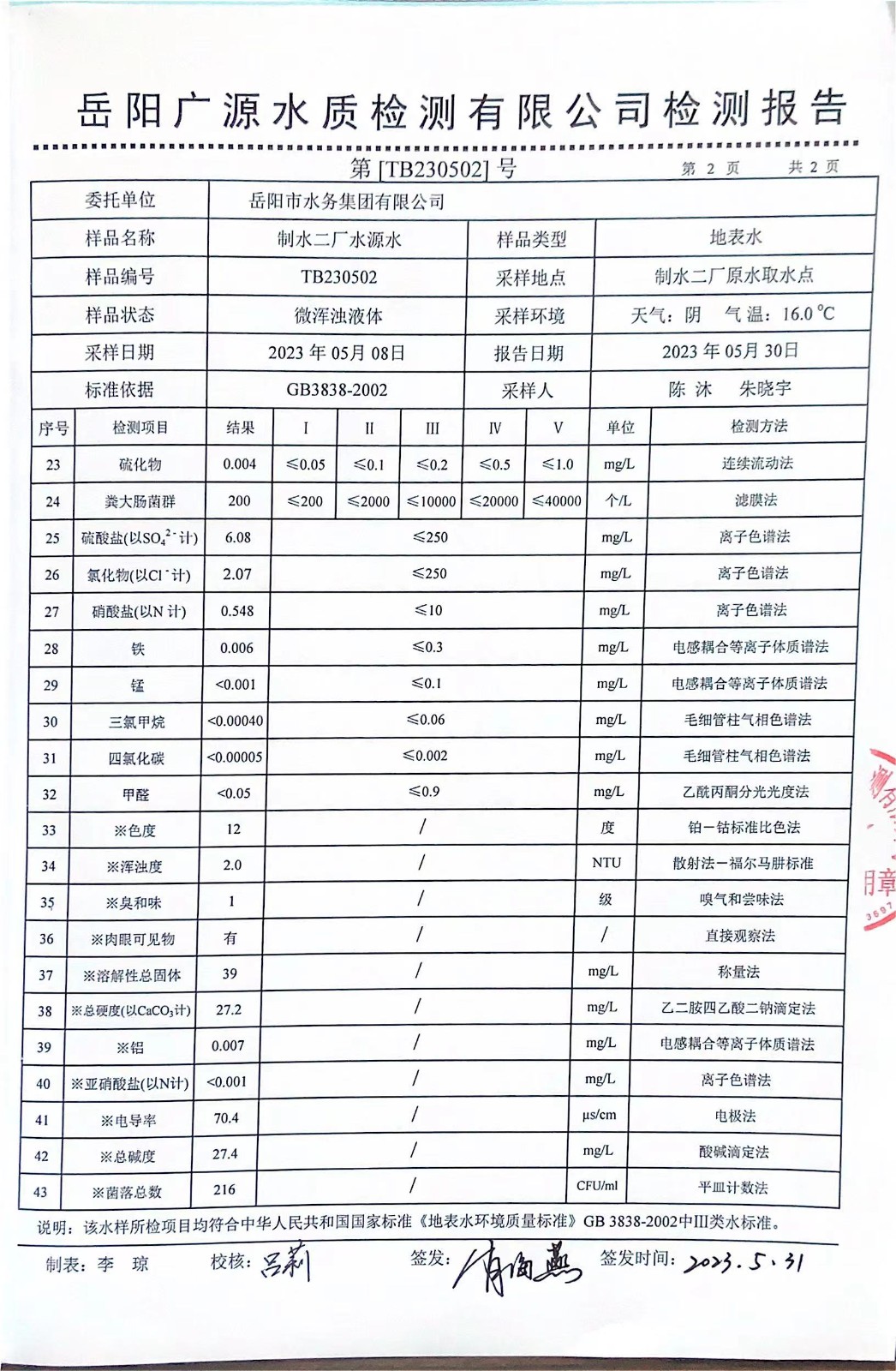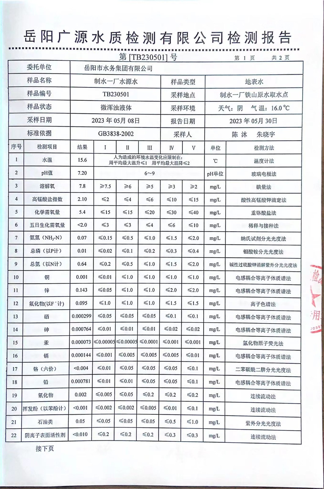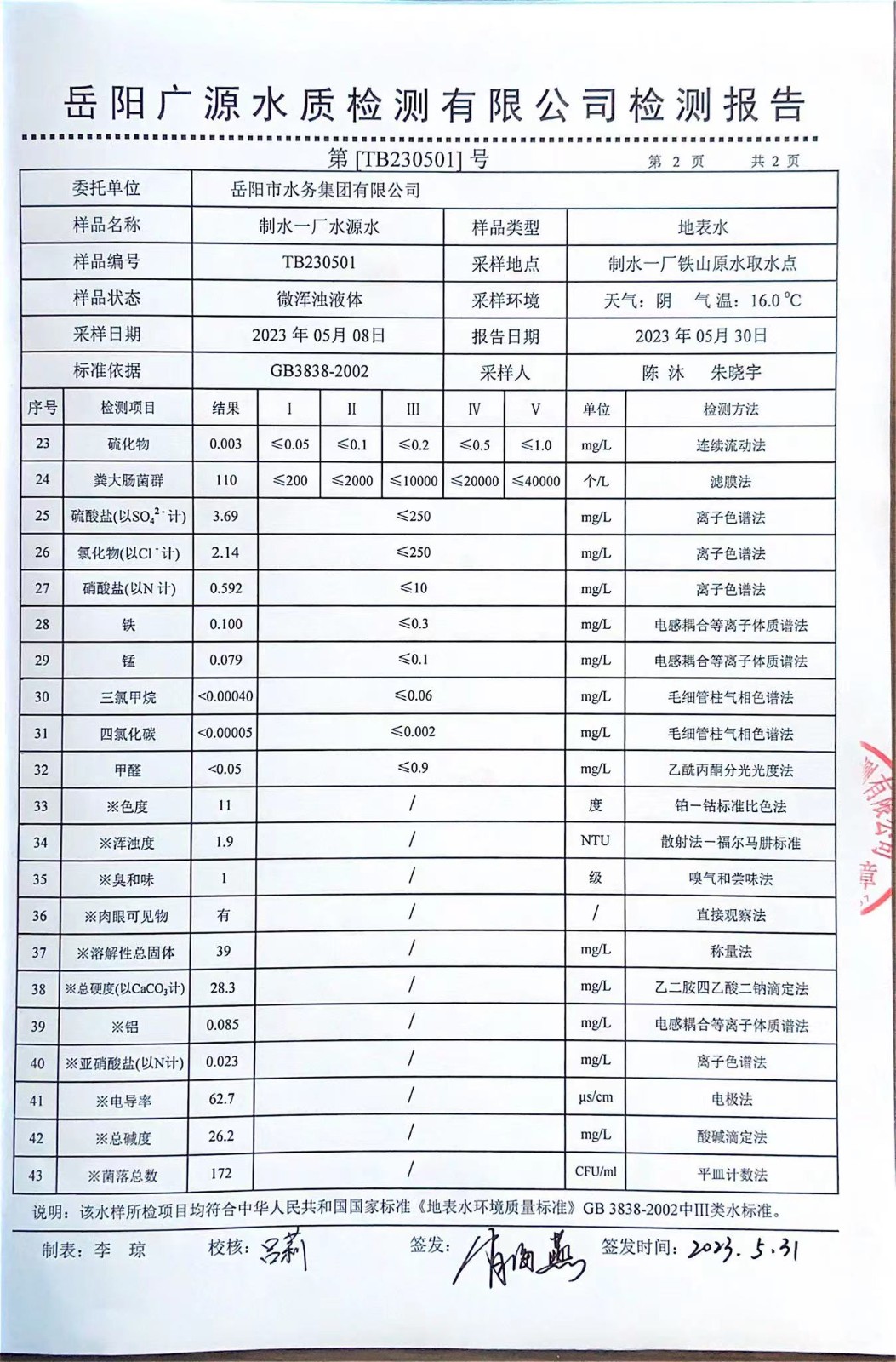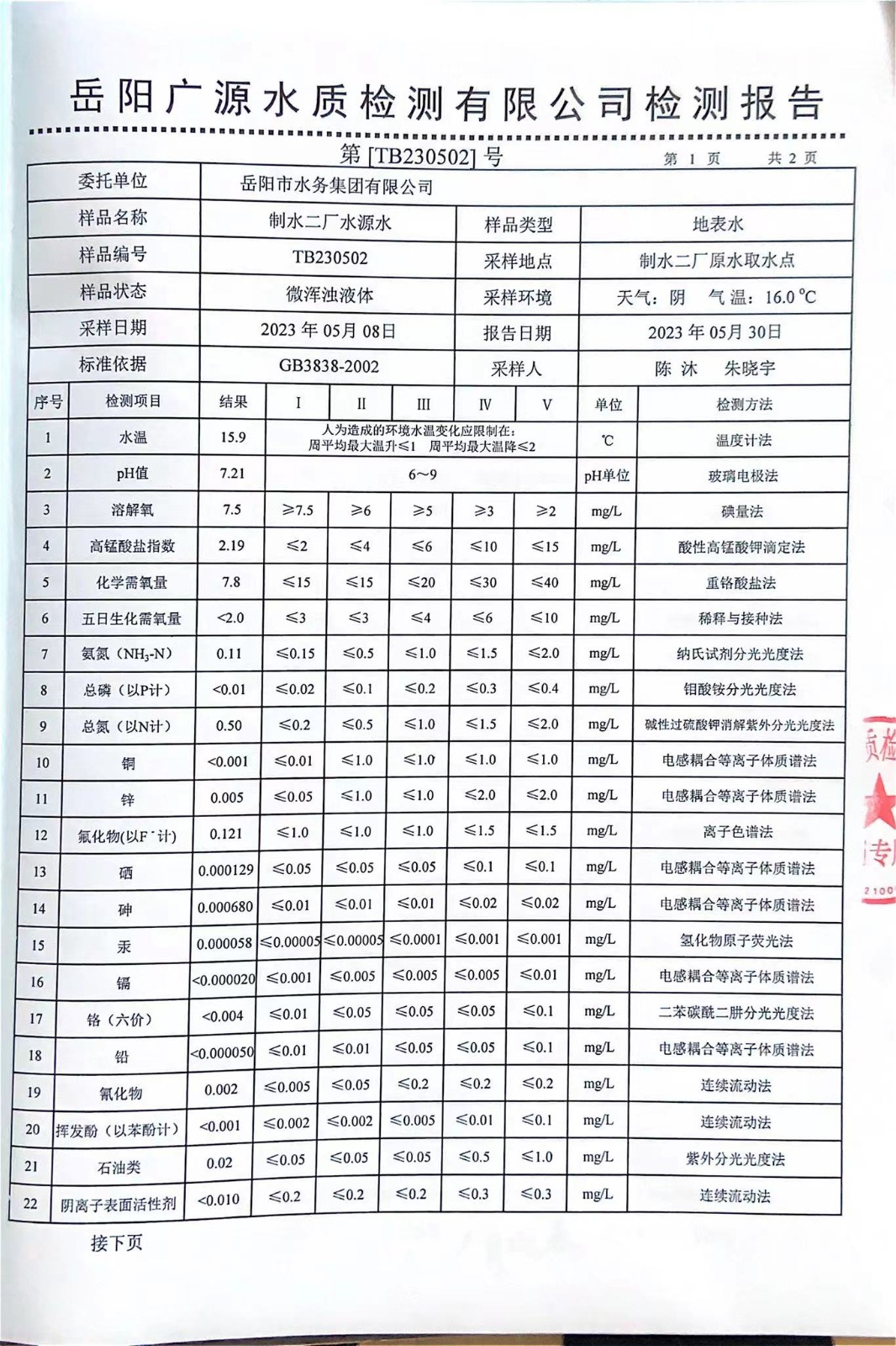 下一篇:2023年5月岳陽(yáng)市水務(wù)集團(tuán)出廠水水質(zhì)檢測(cè)日?qǐng)?bào)表(5月6日-5月12日)