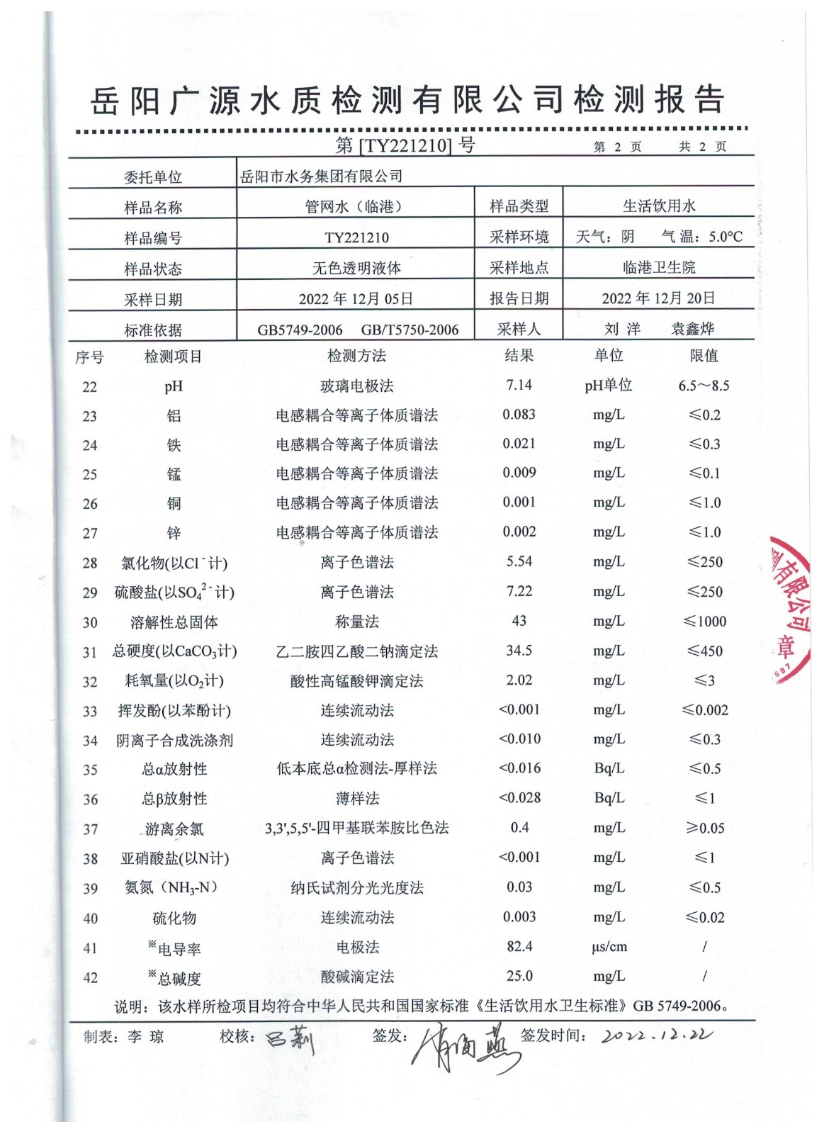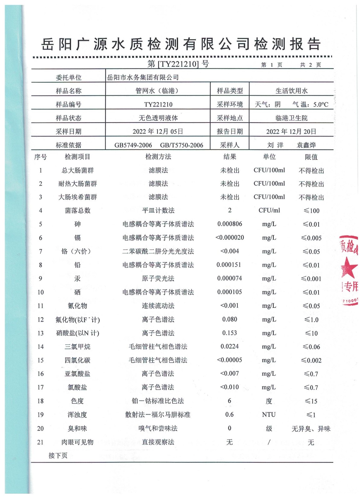 下一篇:2022年12月岳陽市水務(wù)集團(tuán)出廠水水質(zhì)檢測月報(bào)表