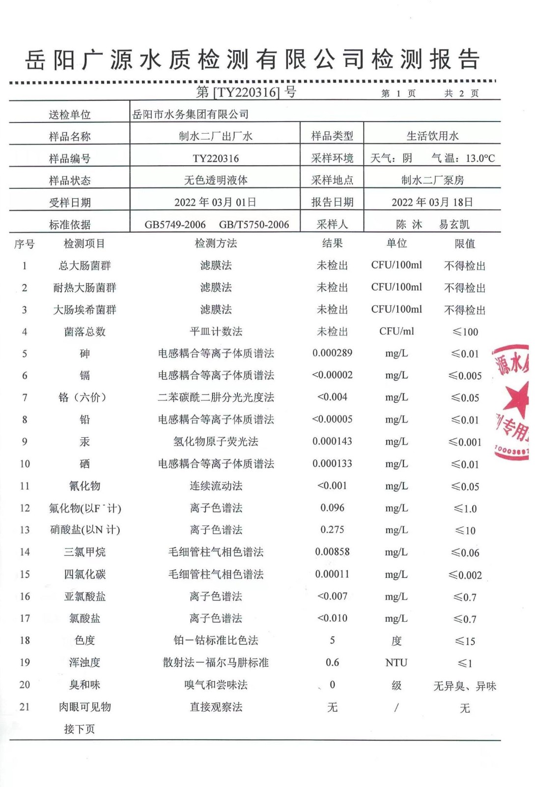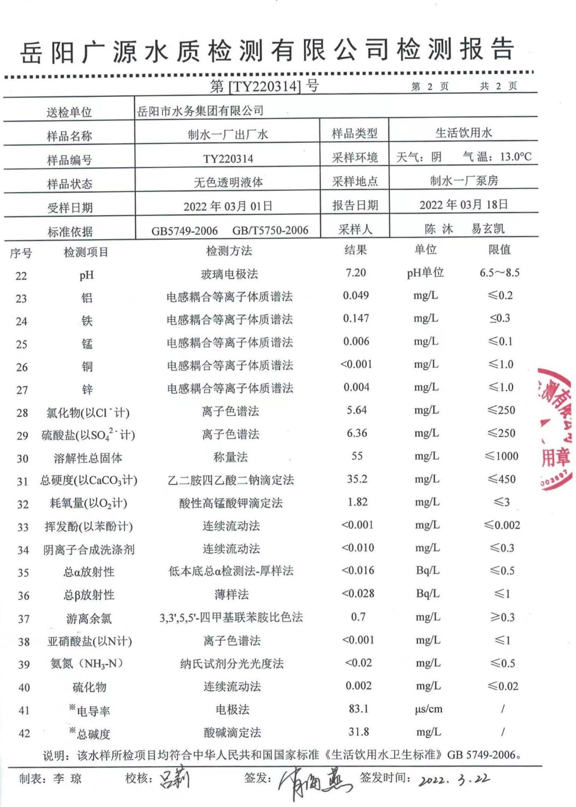 上一篇:2022年03月岳陽市水務(wù)集團管網(wǎng)水水質(zhì)檢測月報表