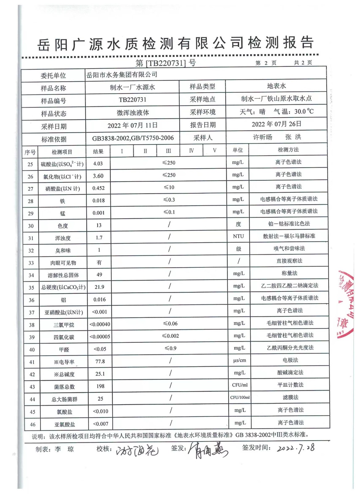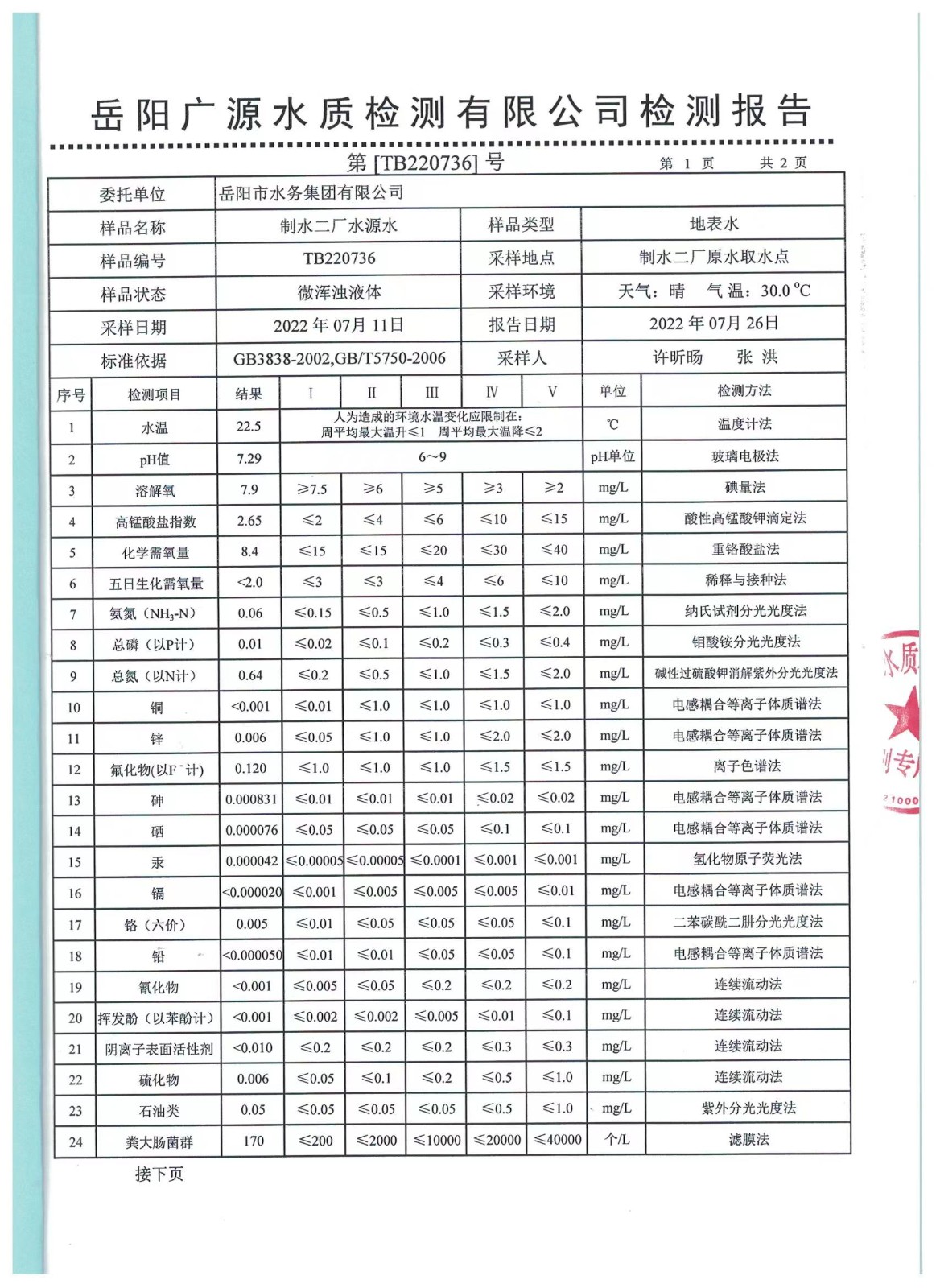 上一篇:2022年07月岳陽市水務(wù)集團(tuán)出廠水水質(zhì)檢測(cè)月報(bào)表