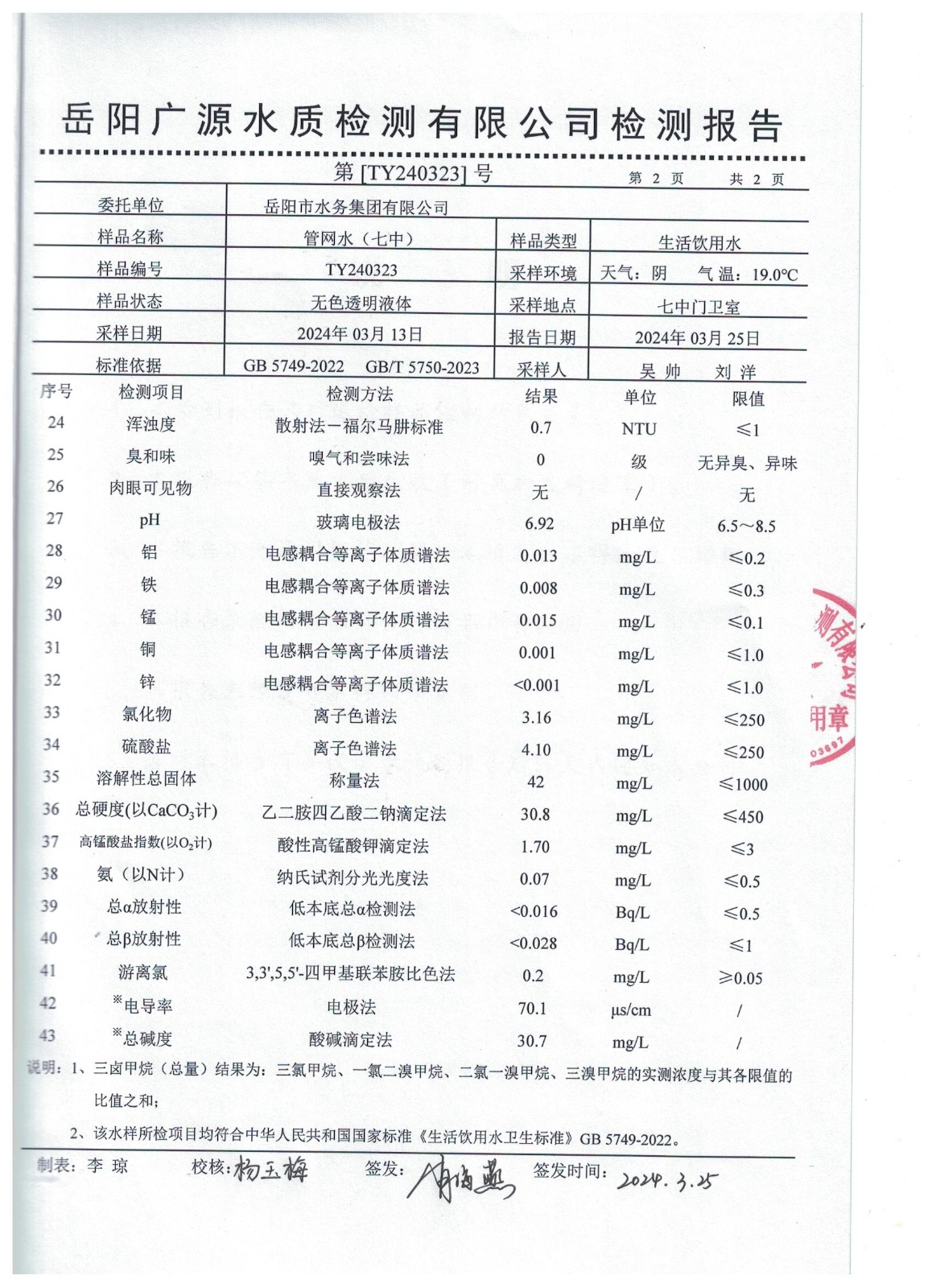 下一篇:2024年3月岳陽市水務(wù)集團(tuán)水源水水質(zhì)檢測月報表