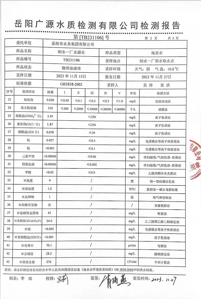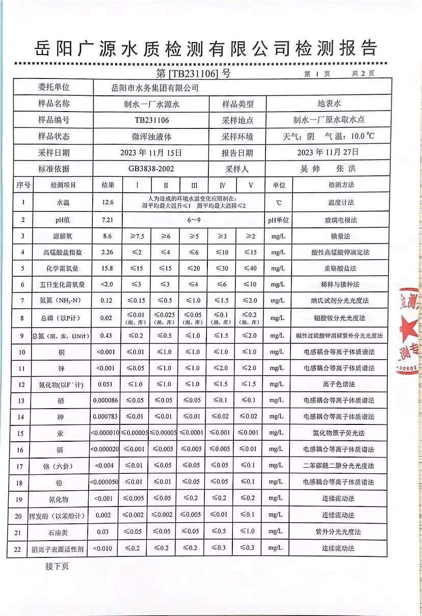 下一篇:2023年11月岳陽市水務(wù)集團(tuán)出廠水水質(zhì)檢測月報表
