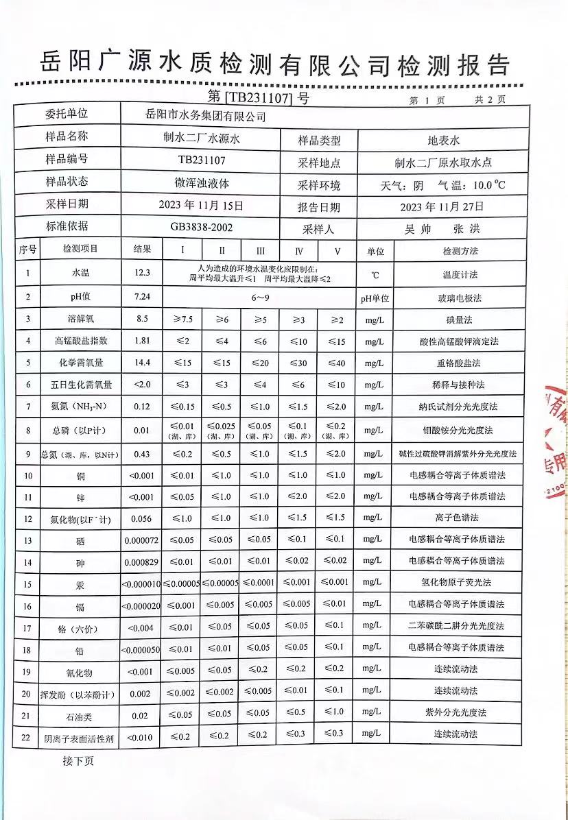 上一篇:2023年11月岳陽市水務(wù)集團(tuán)管網(wǎng)水水質(zhì)檢測月報表